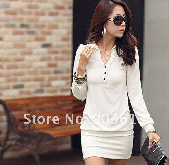 NEW WOMEN'S LONG SLEEVE DRESS SLIM COTTON LAPEL